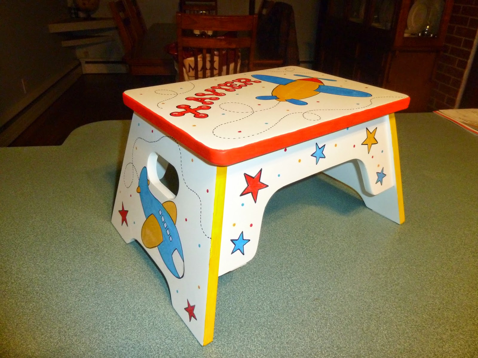 A few month's ago I was asked to be a godmother to my cousin, Xavier. The Christening was last Sunday, and since I know his mother loves hand painted items, I made him this step stool! It is something he could easily grow into and use as a decoration for his room! I got the step stool at Target and used my oil based paint pens for the design. When it was all done, I wrapped it up in clear wrap. I meant to take a picture of it all wrapped up, but I completely forgot!